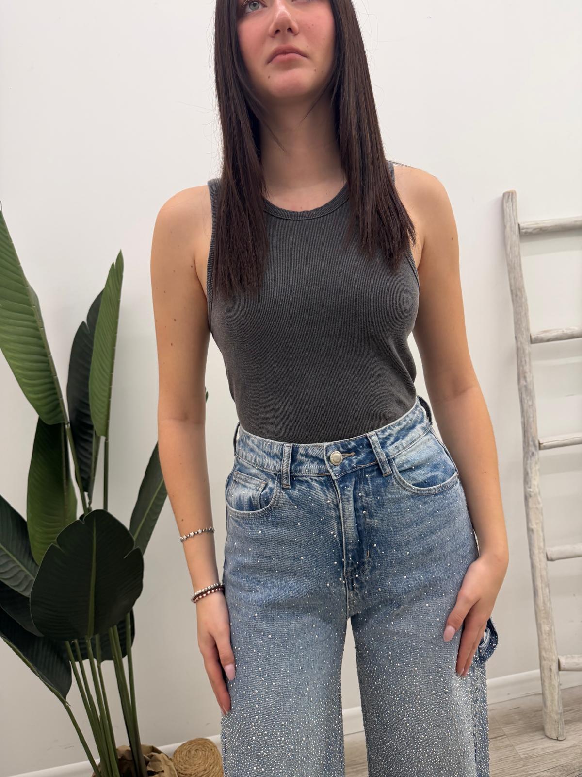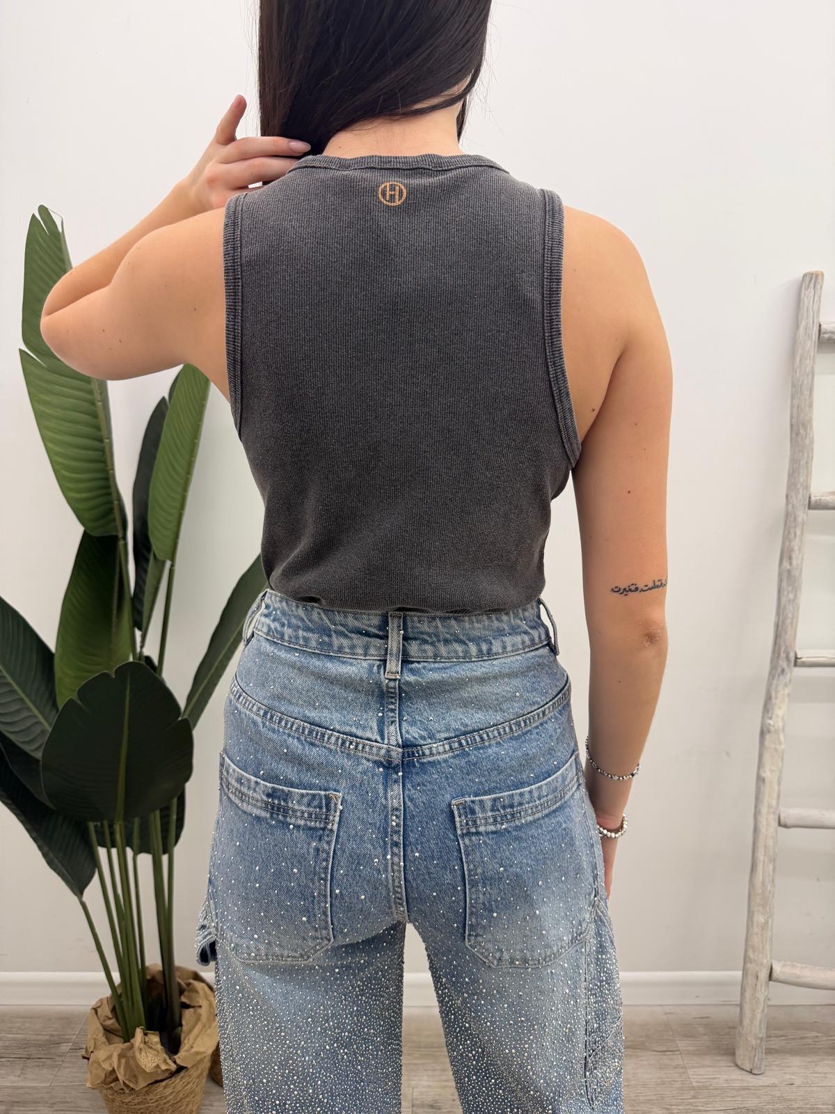 Canotta costine a vogatore in cotone effetto marmorizzato con scollo rotondo.