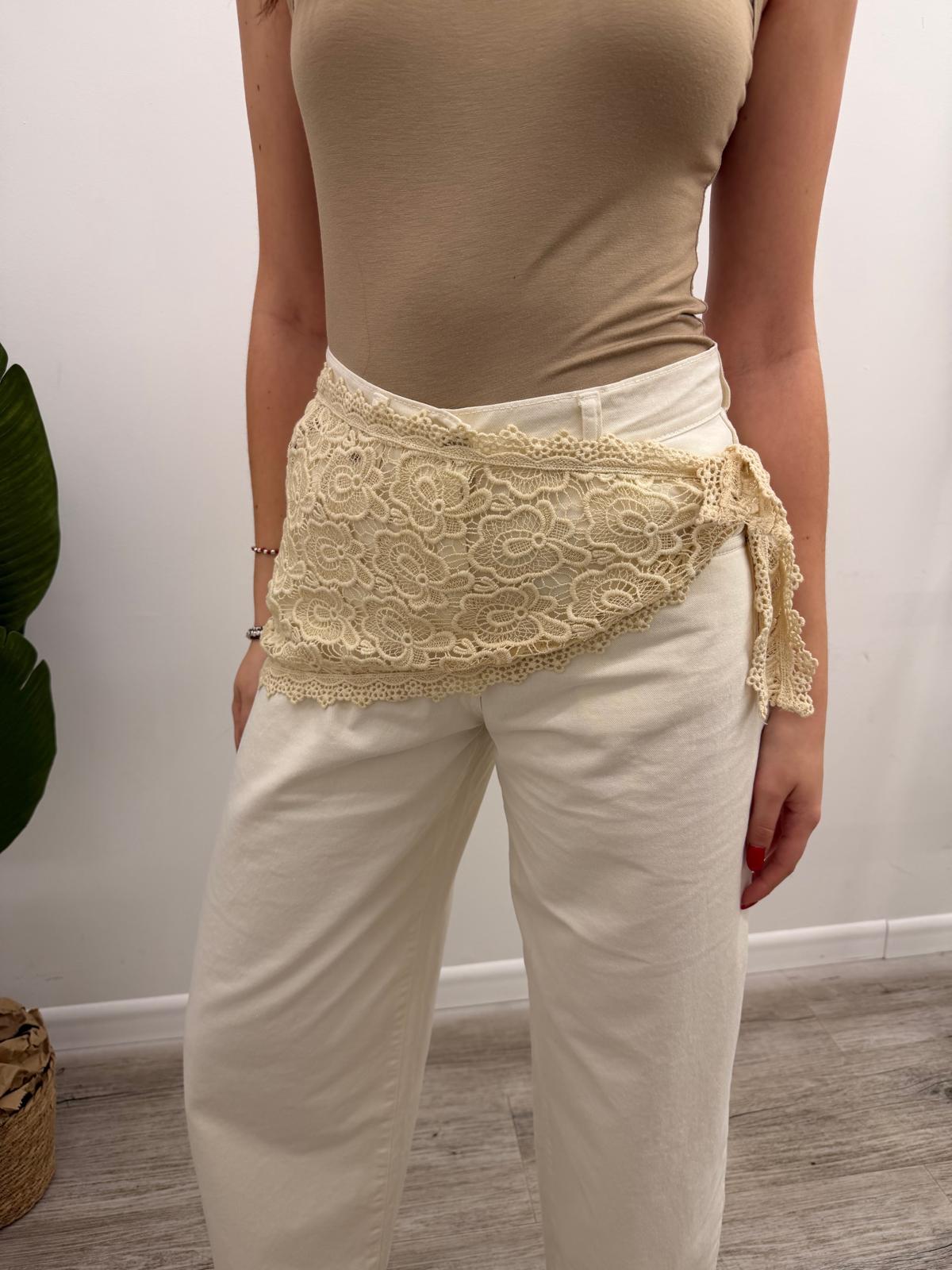 Foulard a triangolo in pizzo ricamato, portabile anche in vita.